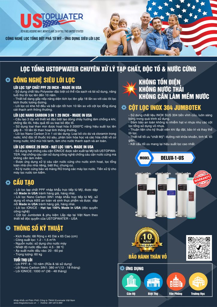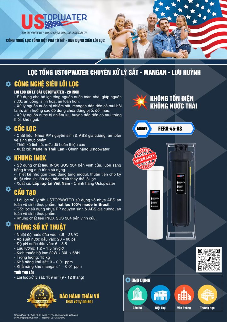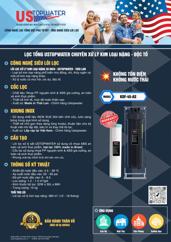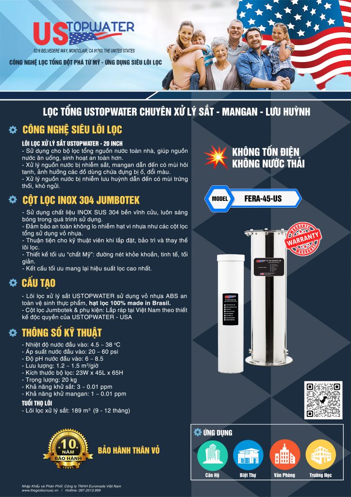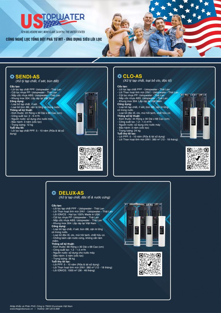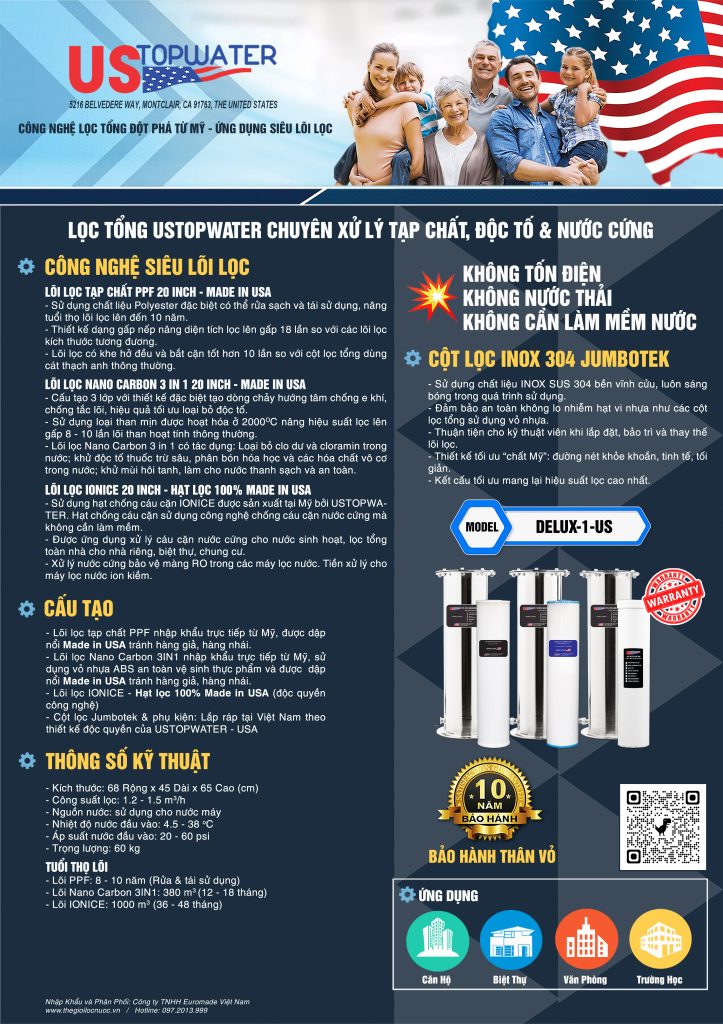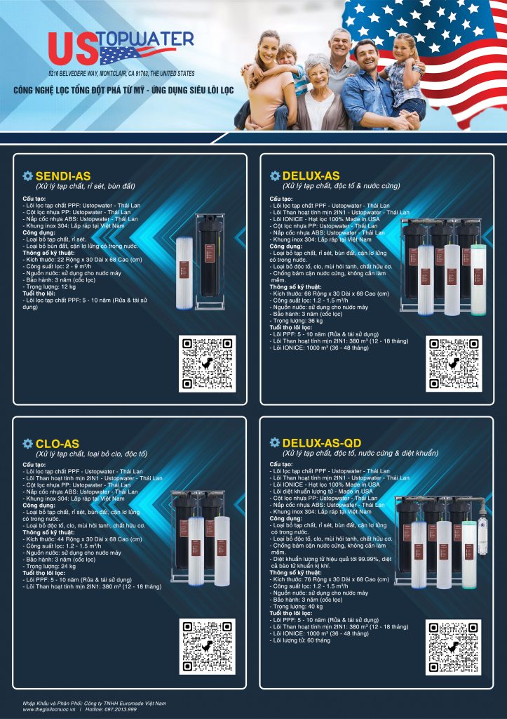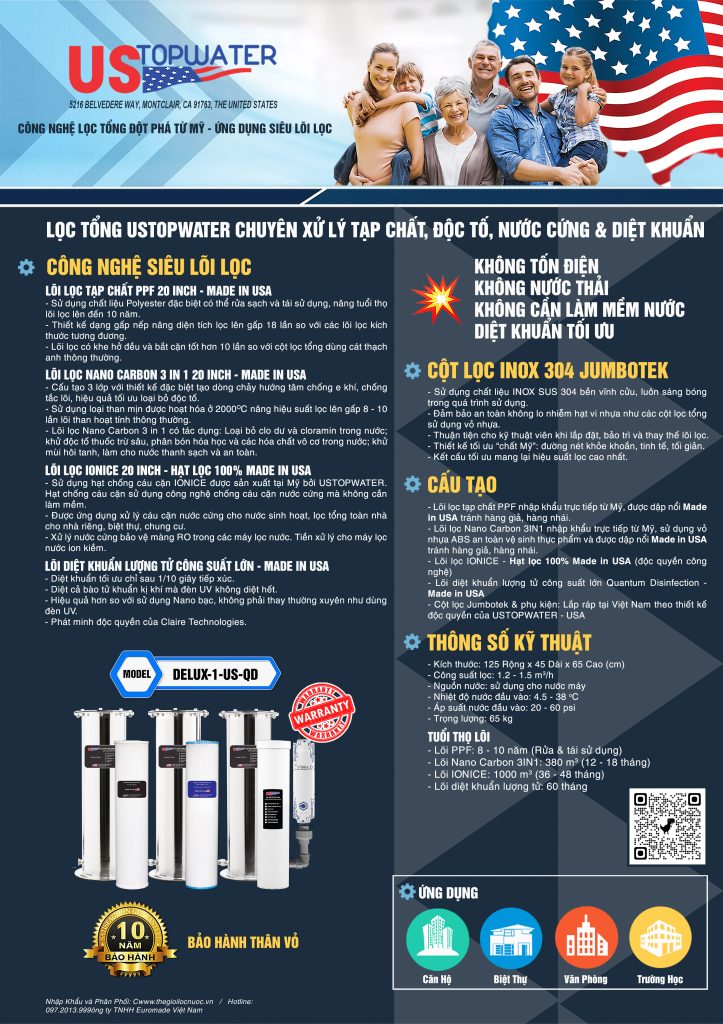 USTopWater là tập đoàn tiên phong tại Hoa Kỳ về phát triển hệ thống lọc tổng sử dụng công nghệ siêu lõi lọc trong đó sử dụng các lõi lọc đặc biệt có hiệu suất xử lý cao hơn từ 10 - 20 lần lõi lọc thông thường như: