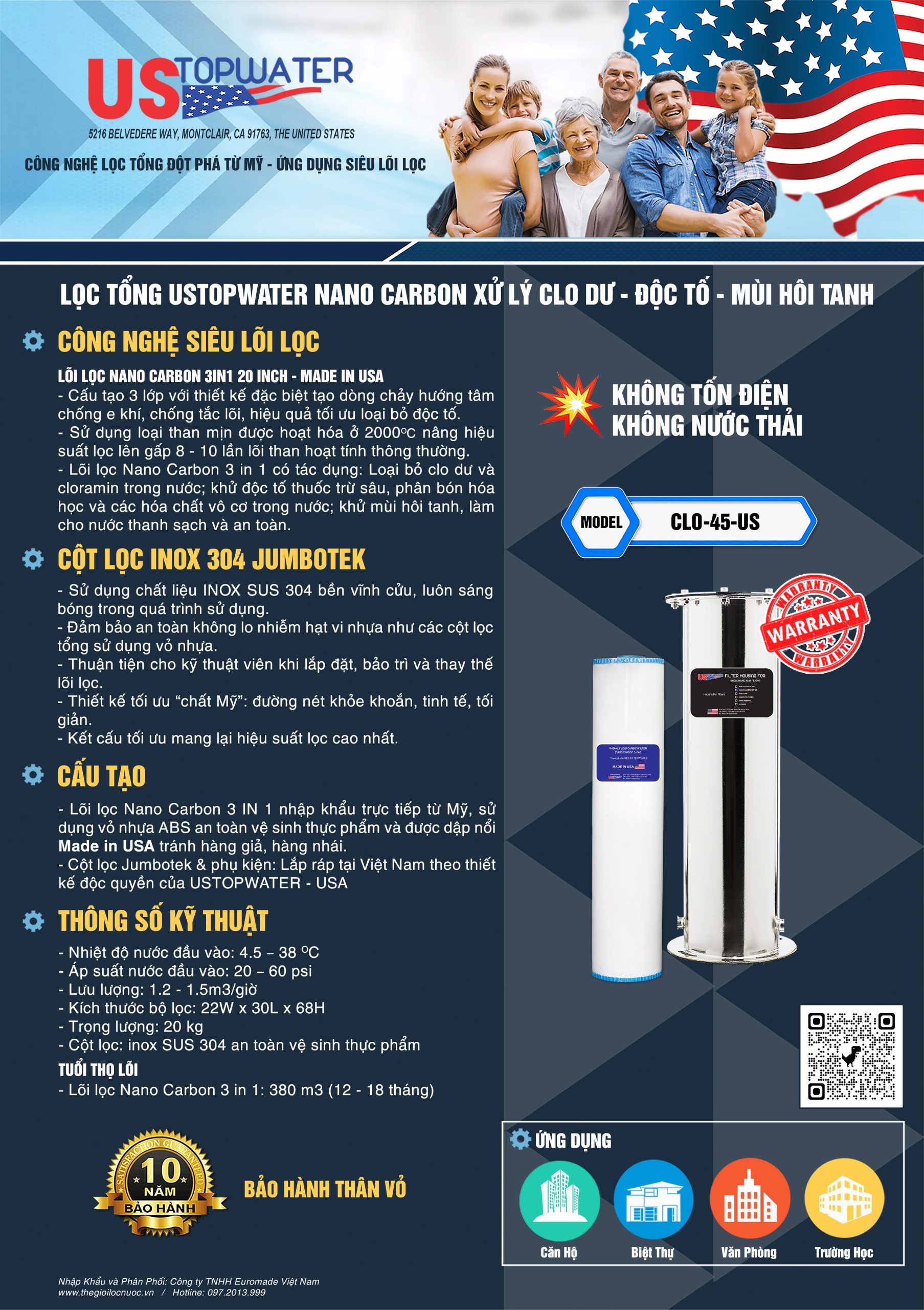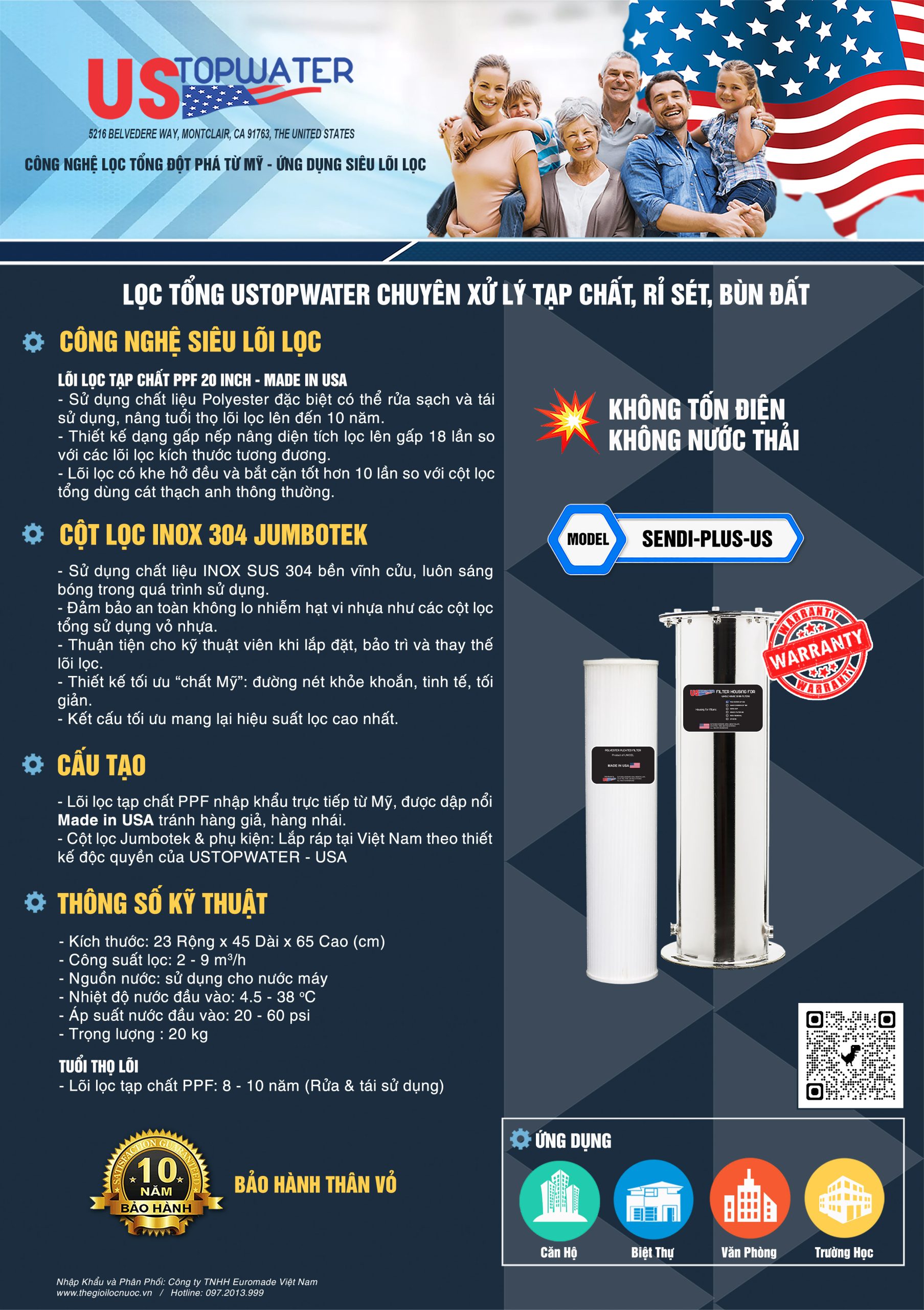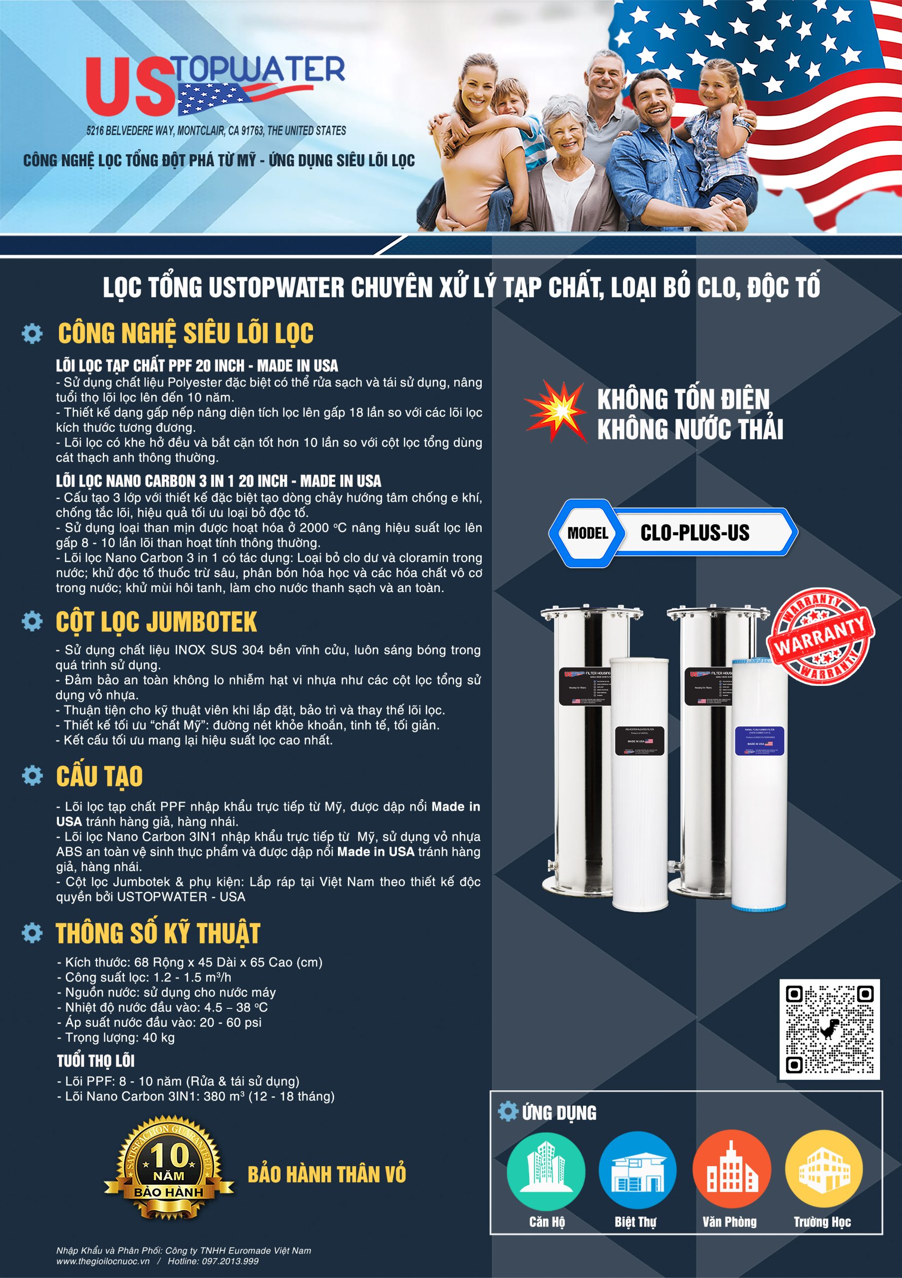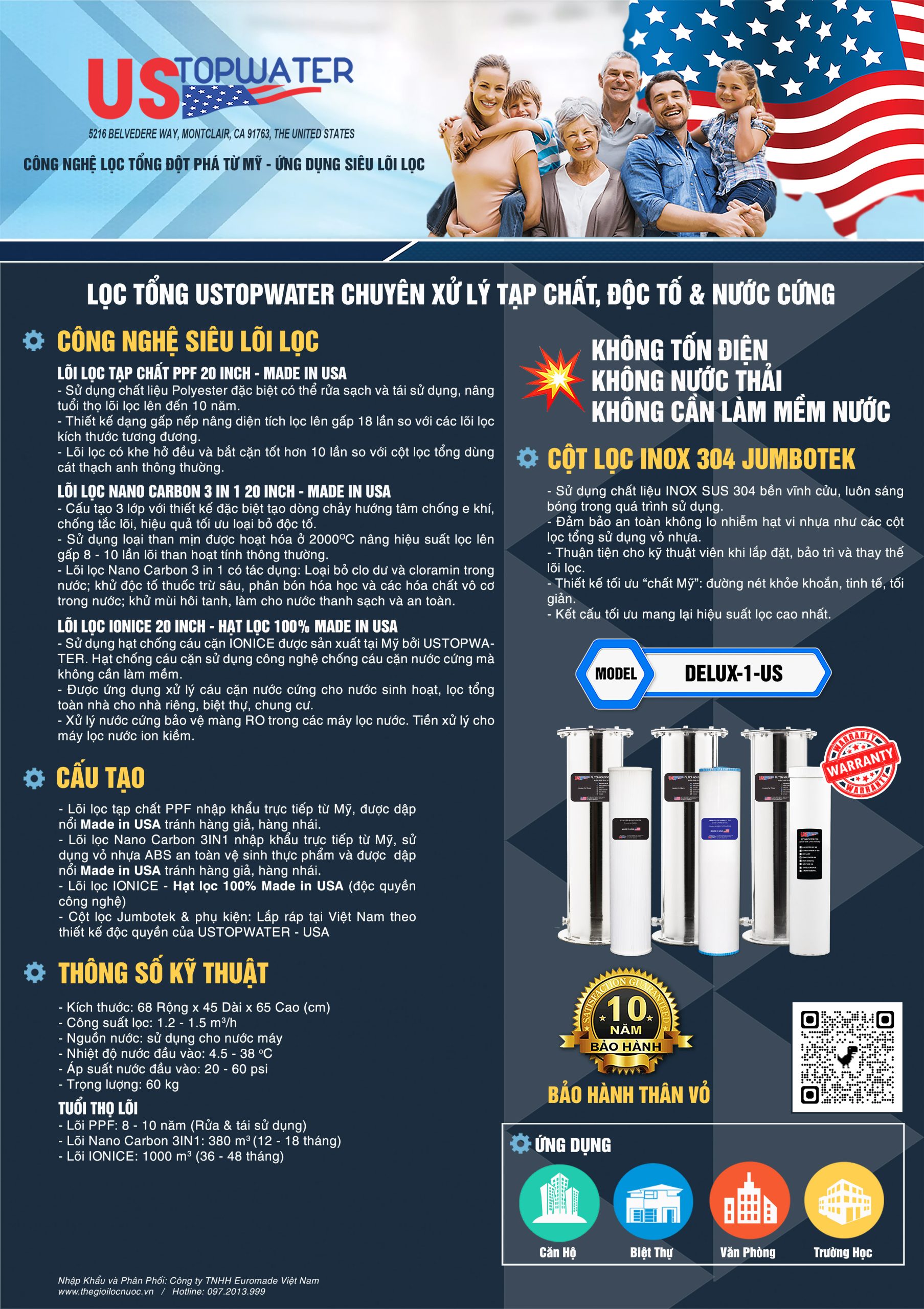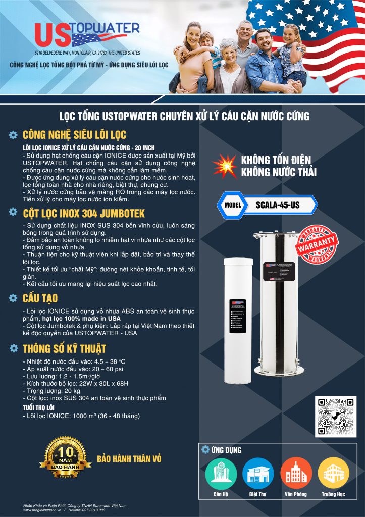 USTopWater là tập đoàn tiên phong tại Hoa Kỳ về phát triển hệ thống lọc tổng sử dụng công nghệ siêu lõi lọc trong đó sử dụng các lõi lọc đặc biệt có hiệu suất xử lý cao hơn từ 10 - 20 lần lõi lọc thông thường như: