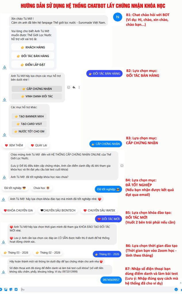 Hình thức: Qua chatbot của Fanpage Thế Giới Lọc Nước